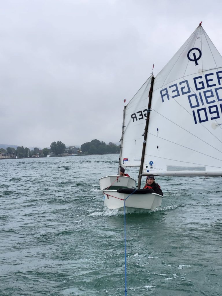 Unsere Nachwuchssegler hatten mit den teilweise sehr ruppigen Bedingungen großen Spaß, bzw. stellten sich tapfer der persönlichen Herausforderung. Beeindruckend war für alle Kinder, dass insgesamt über 100 Boote (Opti A und B) auf dem Wasser waren. Sophie und Paulus waren etwas vom Pech verfolgt, da sie jeweils zweimal in sehr ordentlicher Position liegend bei am Ende einschlafendem Wind nicht in die Wertung kamen.